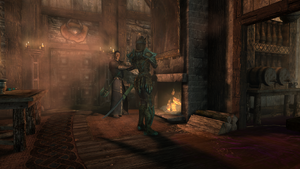 (Ou vous pouvez sortir de la caserne côté Thalmor pour vous retrouvez face à la porte d'entrée du manoir, mais puisqu'il y a un garde juste devant qui quitte rarement son poste, ainsi que plusieurs de ses camarades, ce n'est pas le meilleur pour se faufiler.)