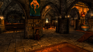 L'un des rares endroits qui sera ouvert toute la journée est également le lieu où il vous est conseiller de vous dirigez en premier, afin d'obtenir l'une des deux quêtes proposées par le mod : l'auberge. Elle vous sera donnée par Gwyndris, la tavernière, mais à une condition.