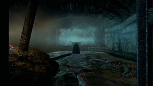 Une fois les nécromanciens vaincus, laissez-vous tomber dans la grille au sol pour finalement arriver près de la sépulture d'un prêtre-dragon, accompagné de deux gardes seigneurs draugrs. Vainquez-les et activez la poignée au centre de la pièce, avant de revenir sur vos pas, dans la petite alcôve près de la lanterne du couloir se trouve une chaîne, qui vous ouvrira la voie vers l'autre partie des ruines.