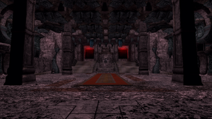 Et ça tombe bien, il y a toute une flopée d'ennemis qui vous attendent droit devant, dont deux terminators alpha. Une fois votre victoire acquise, traversez la barrière rouge, dans le fond de la pièce, et vous arriverez jusqu'au portail vers le Néant, qui se manifeste sous l'apparence du trône d'Orphis.
